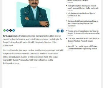 Dr. Rao is well-known in the interior tribal and coal belt areas of Bhadradri Kothagudem District for his ethical, dedicated, and committed service over the last 30 years. He regularly visits these areas, performing preventive screenings, follow-ups, and complex angioplasties, bringing advanced treatments to the district. He has received much applause from the Singareni Coal family for this service.